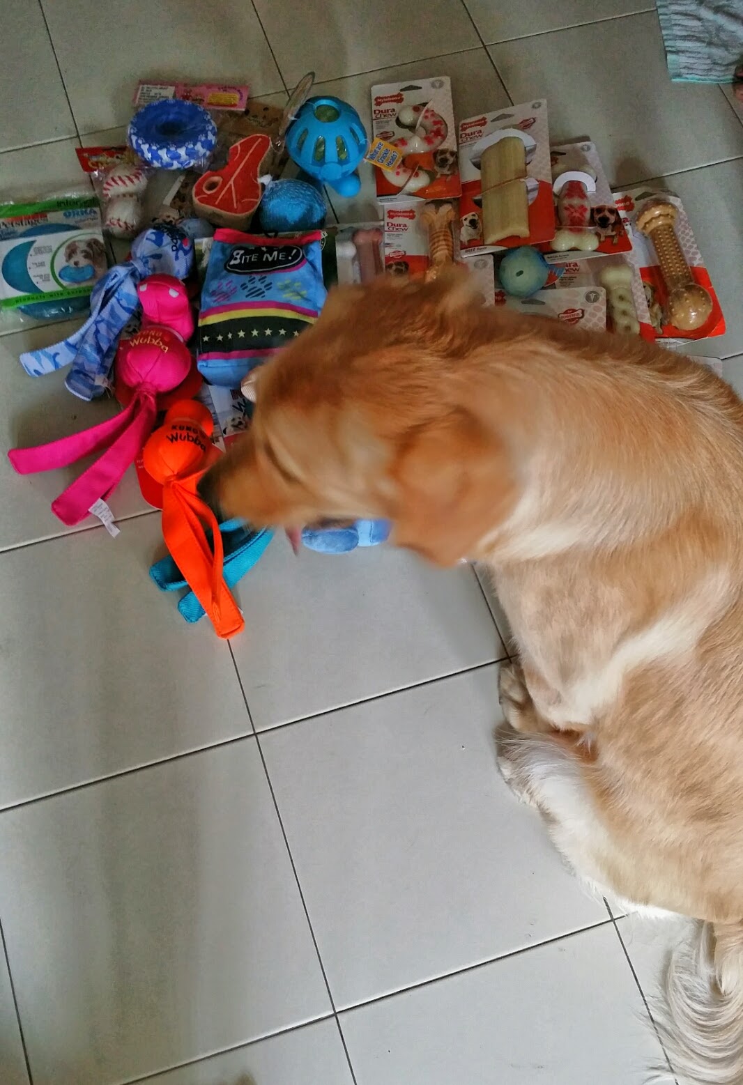 TADA!!! look at all the treats and toys i get for my 1st birthday!